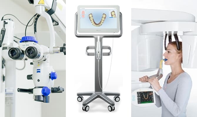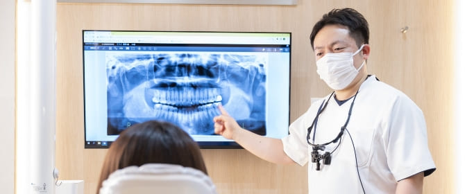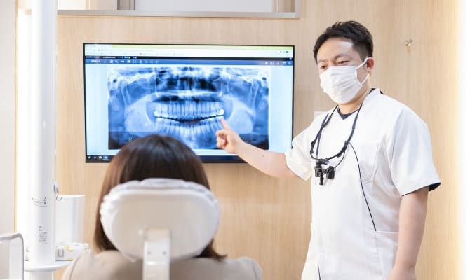 当院では、歯科用CTやマイクロスコープ、口腔内スキャナーなどの精密機器を導入しています。これらの機器を使用することで、より安全で負担の少ない診断・治療を行うことが可能です。