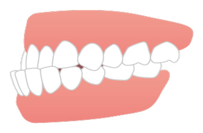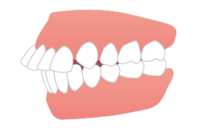 上の前歯が前方に突き出している状態で、いわゆる出っ歯と呼ばれます。見た目だけでなく、口が閉じにくく前歯の損傷リスクも高くなります。