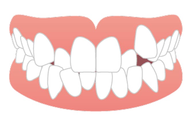 歯が重なり合ってデコボコに並んでいる状態です。歯ブラシが届きにくく、虫歯や歯周病のリスクが高くなりやすいのが特徴です。