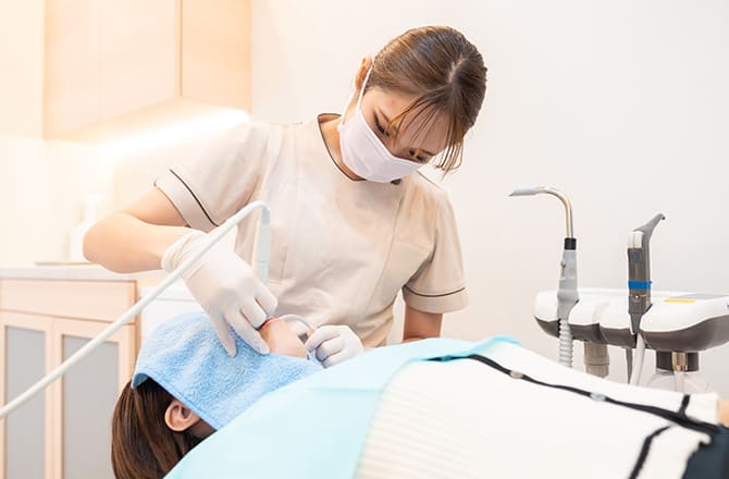 矯正治療中はもちろん、治療後も健康なお口を維持できるよう、当院では予防歯科と連携した体制を整えています。担当の歯科衛生士が定期的なチェックやプロによるクリーニングを行い、必要に応じてブラッシング指導もします。