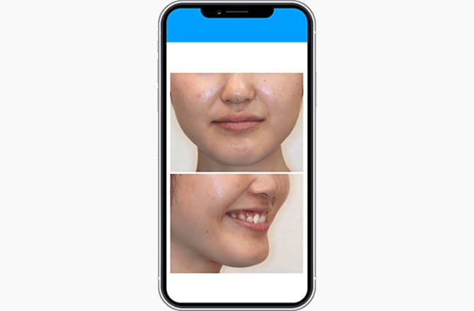 さらに、診療時に撮影した写真やクリンチェック動画も共有され、患者さまご自身が経過を確認できます。来院が難しい場合には、患者さまが撮影した写真をアプリ経由で送信することもできます。