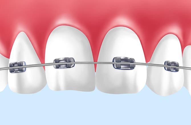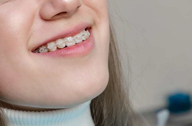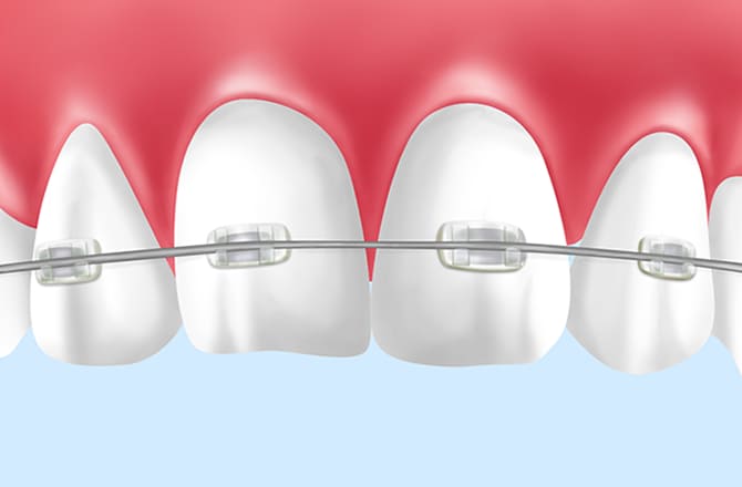 白色または半透明のセラミック製ブラケットを使用するため、歯の色に溶け込み、矯正装置が目立ちにくいのが特長です。仕組みはメタルブラケットと同じで幅広い症例に対応可能で、審美性を重視する方に特に適しています。