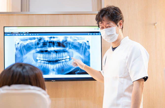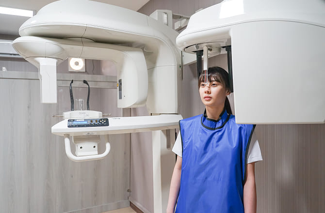 歯型採取やレントゲン撮影に加え、必要に応じてCTやセファロを使用し、顎や骨の状態まで詳しく調べます。これらをもとに、患者さまごとに最適な治療プランを立案します。
